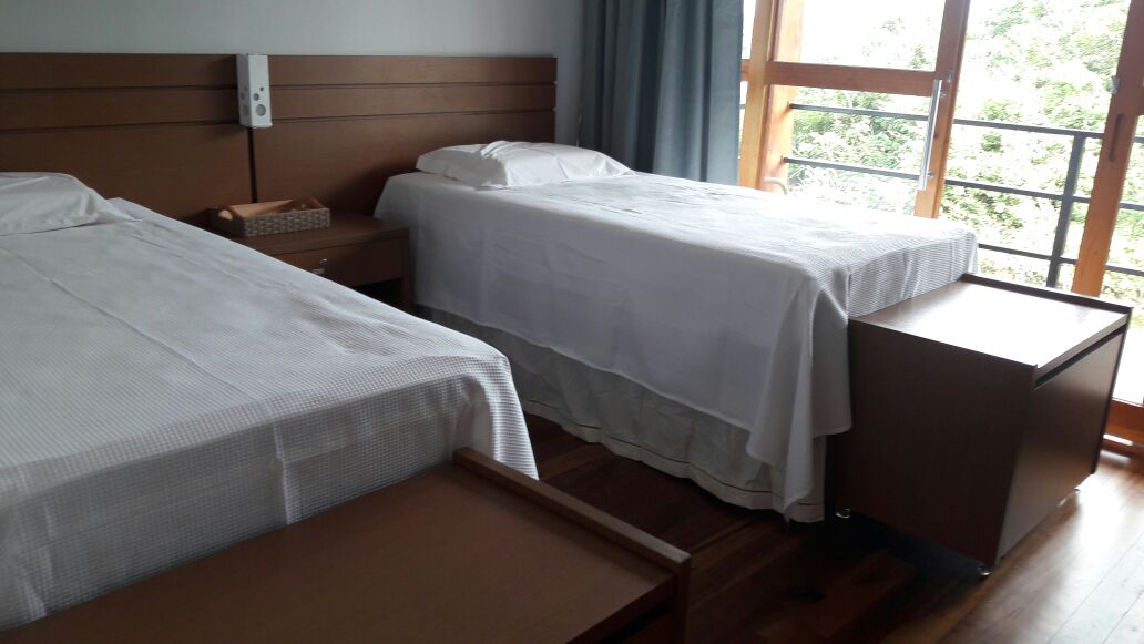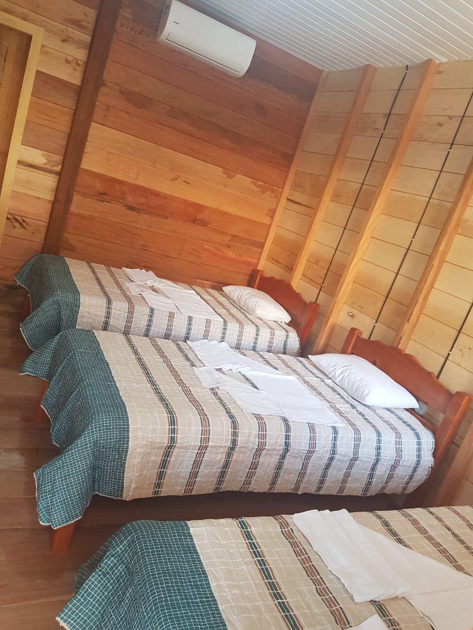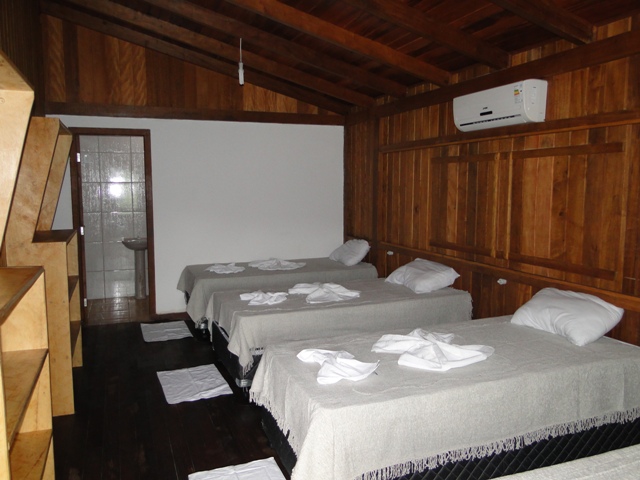 Capacidade para 16 pessoas em aptos duplos e triplos equipados com ar condicionado, água quente e fria.